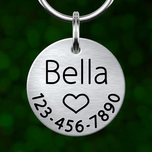 Help your furry friend get home safely with a custom dog tag! This personalized pet ID tag for dogs & cats is deeply engraved using our specially developed technique, ensuring your information will still be readable when it matters most.